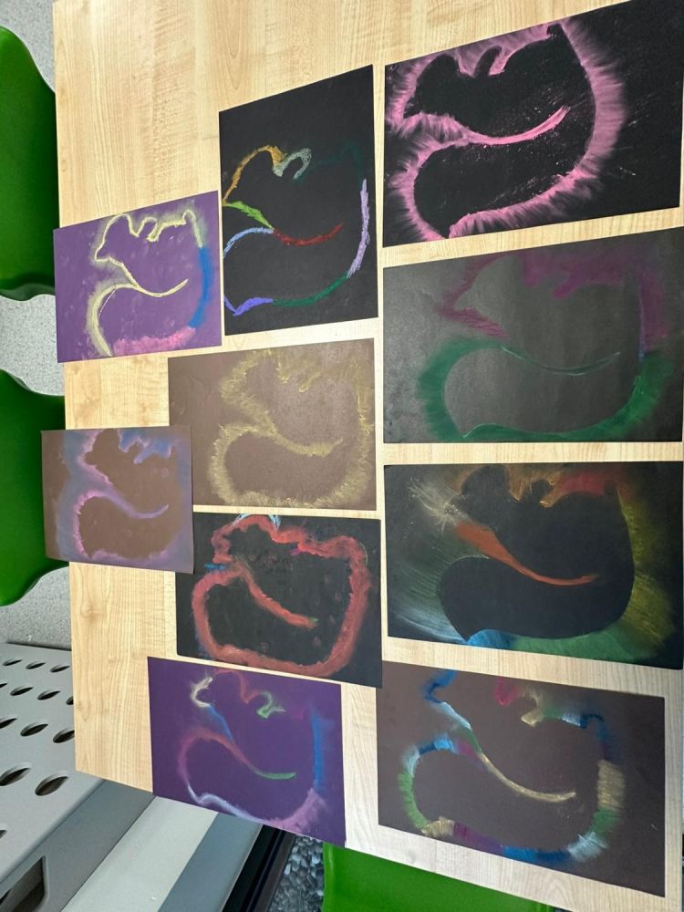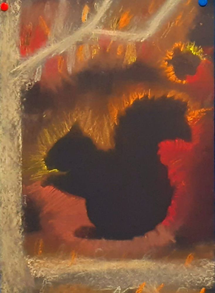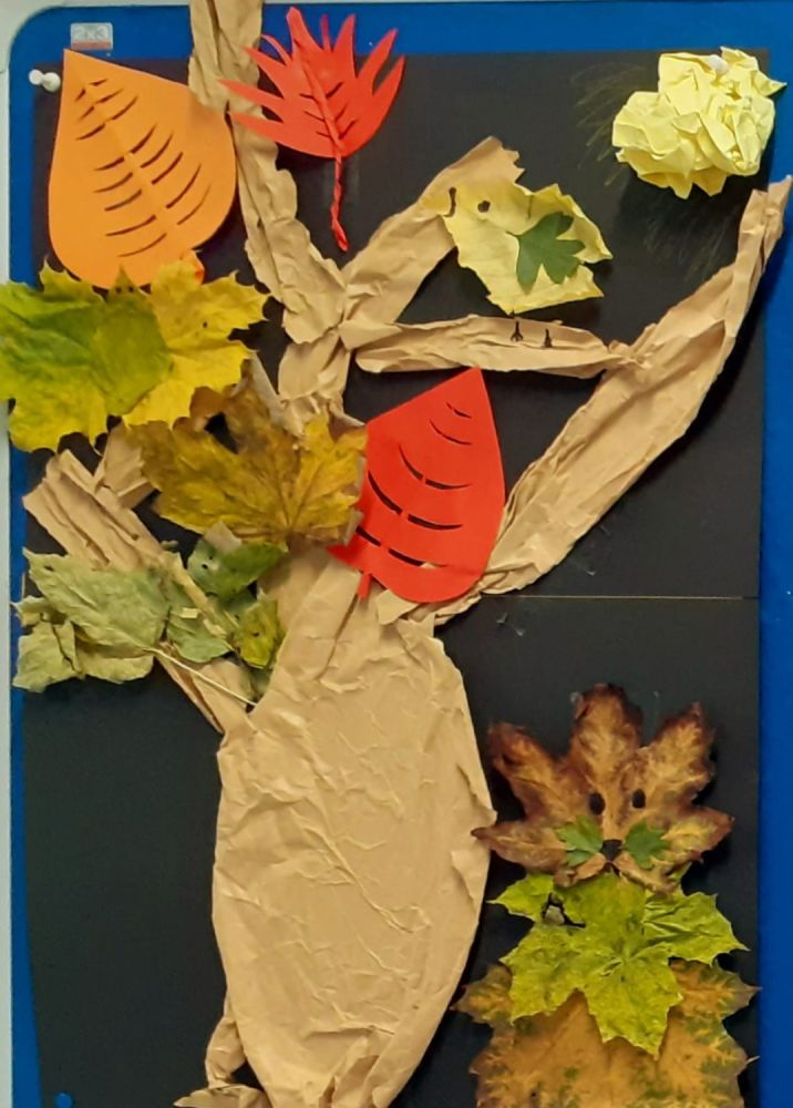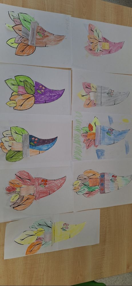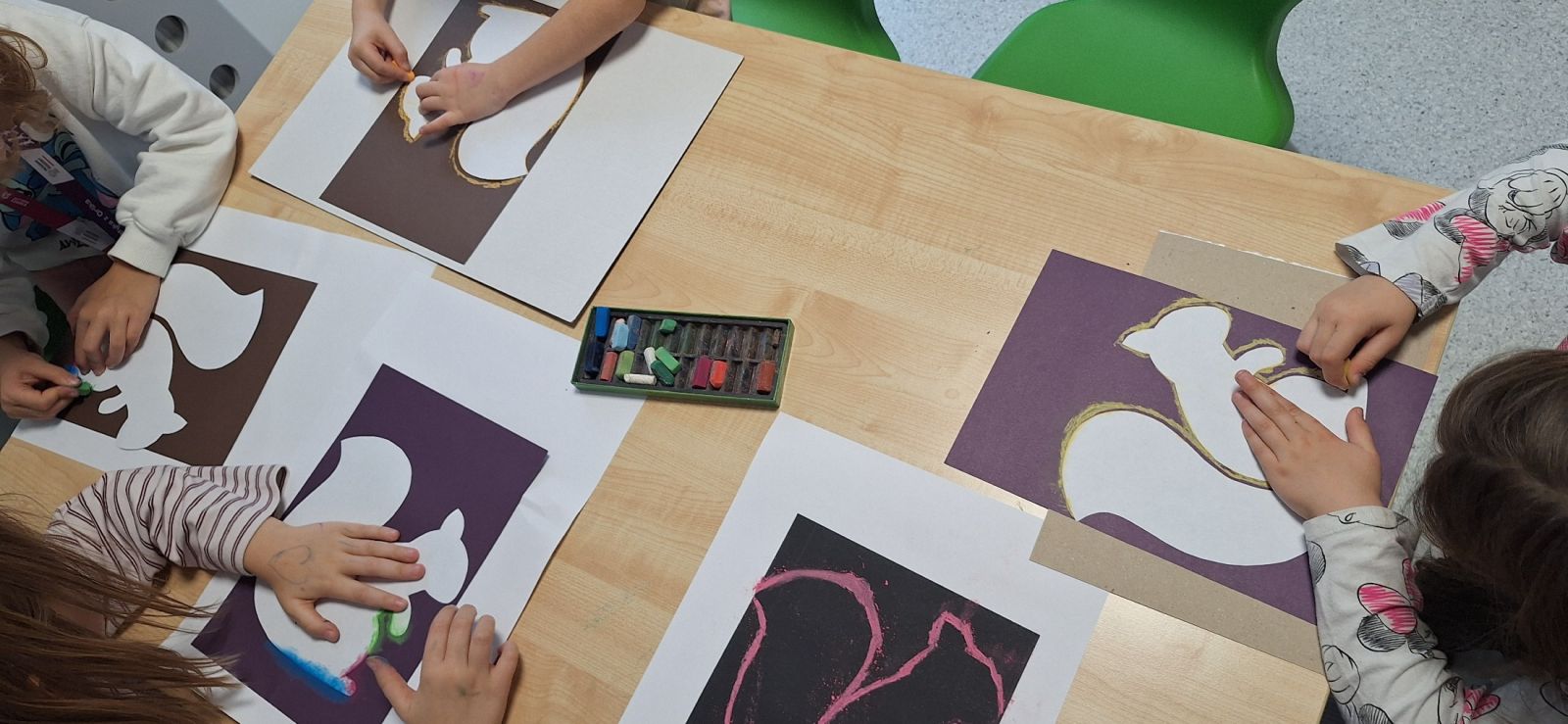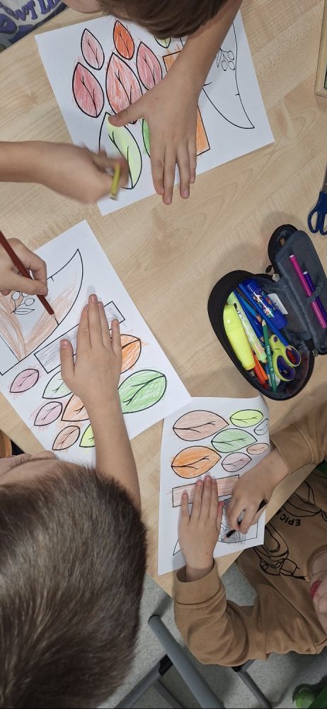 Jesienna sceneria w świetlicy ożyła dzięki dziecięcym pomysłom. Liście wykonane techniką zentangle, wiewiórki i jeże tworzą wyjątkową, ciepłą galerię prac dzieci z klas 1a, 1c i 2b.