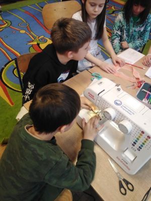 W ramach Laboratorium Przyszłości przez kilka dni dzieci z klas 1a i 2bpodczas pobytu na świetlicy doskonaliły się w szyciu na maszynie. Powstały woreczki, poduszeczki…